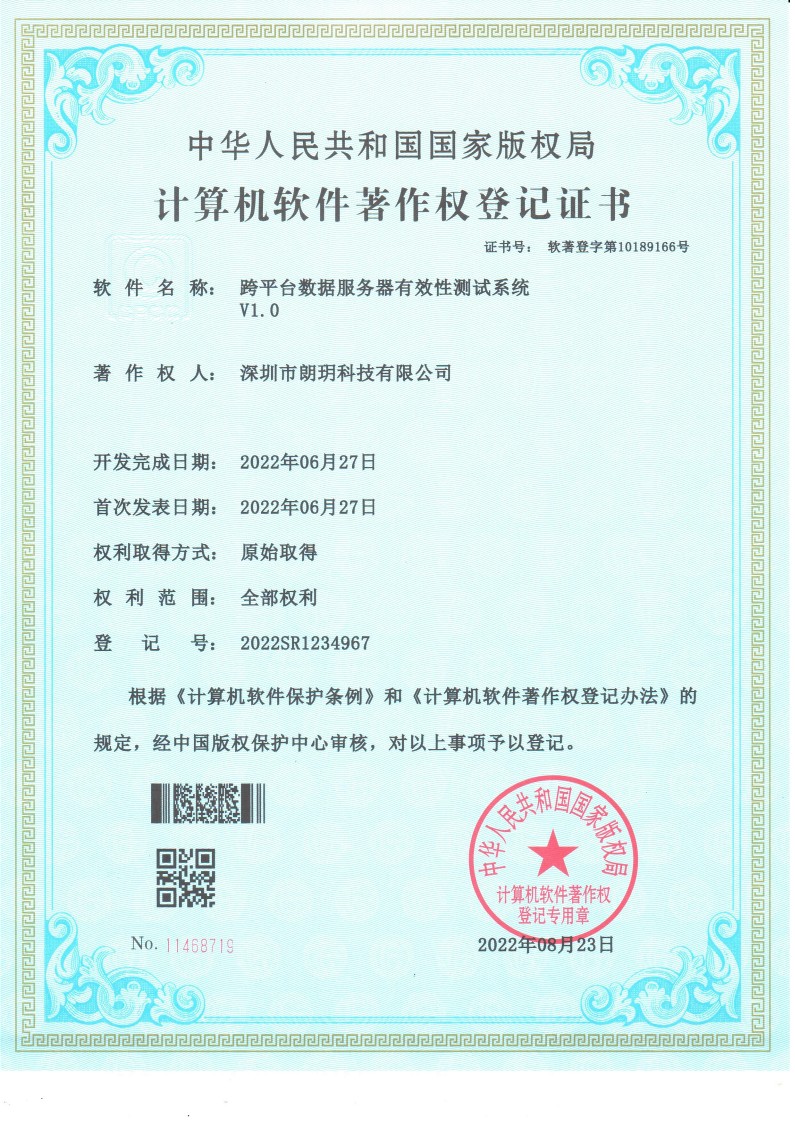 著作權(quán):跨平臺(tái)數(shù)據(jù)服務(wù)器有效性測試系統(tǒng)