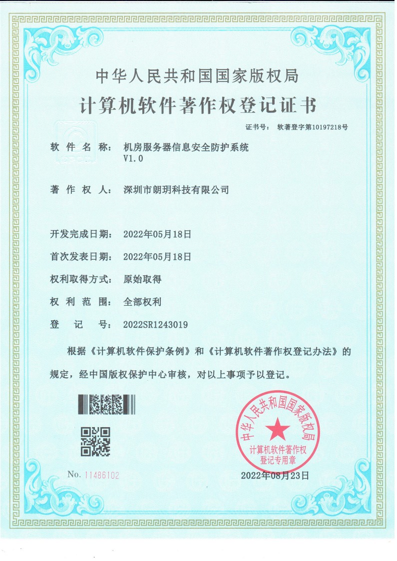 著作權(quán):機(jī)房服務(wù)器信息安全防護(hù)系統(tǒng)