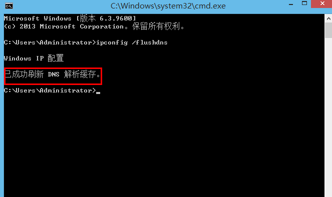 ③出現(xiàn)“successfully flushed the dns resolver cache”即表示已成功刷新DNS解析緩存。