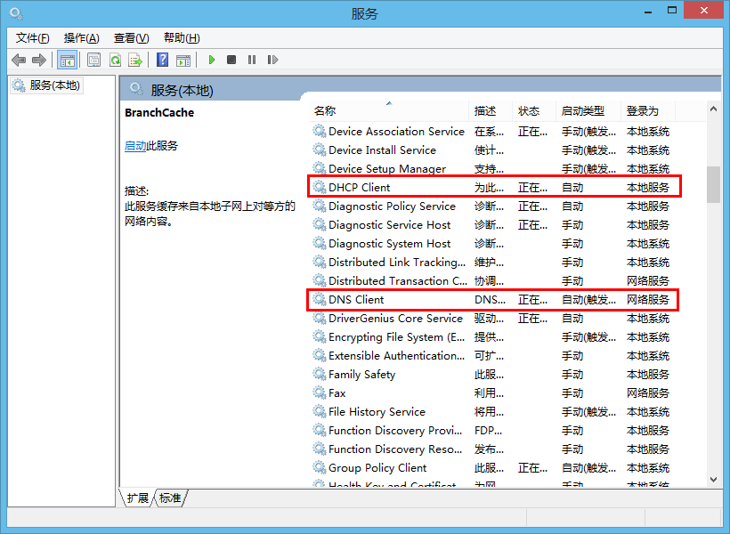 但是,有些用戶在輸入指令后,會出現(xiàn)失敗的情況。這時候我們可以利用另一個手段來解決了。打開控制面板>管理工具>服務,找到DNS Client服務和DHCP client服務>點擊啟動或者重新啟動,這樣也會刷新DNS緩存記錄,如果感覺清除的不夠徹底的話,我們再重新從①開始執(zhí)行即可。