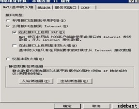點擊開始,程序,管理工具,路由和遠(yuǎn)程訪問![]() 右擊本地計算機,配置并啟用路由和遠(yuǎn)程訪問右擊本地計算機,配置并啟用路由和遠(yuǎn)程訪問 ![]() 一般非單一需求的vpn可選擇自定義配置 ![]() 勾上vpn訪問,nat和基本防火墻,安裝好后詢問是否開始服務(wù),選 是 ![]() 然后打開本地計算機,右擊NAT/基本防火墻,選擇新增端口 ![]() 選擇本地連接,然后點擊公用接口連接到intelnet,并把啟用NAT的勾打上 ![]() 新建一個賬號,然后右擊屬性,點擊撥入,最后把允許訪問的勾打上 ![]() 測試vpn賬號 新建一個vpn連接 ![]() 輸入該服務(wù)器的ip地址 ![]() 完成后輸入vpn用戶名密碼測試 ![]() |